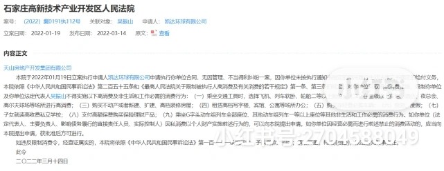 据悉,石家庄高新技术产业开发区人民法院于2022年1月19日立案执行申请人凯达环球有限公司申请执行天山集团合同、无因管理、不当得利纠纷一案,天山集团未按执行通知书指定的期间履行生效法律文书确定的给付义务。